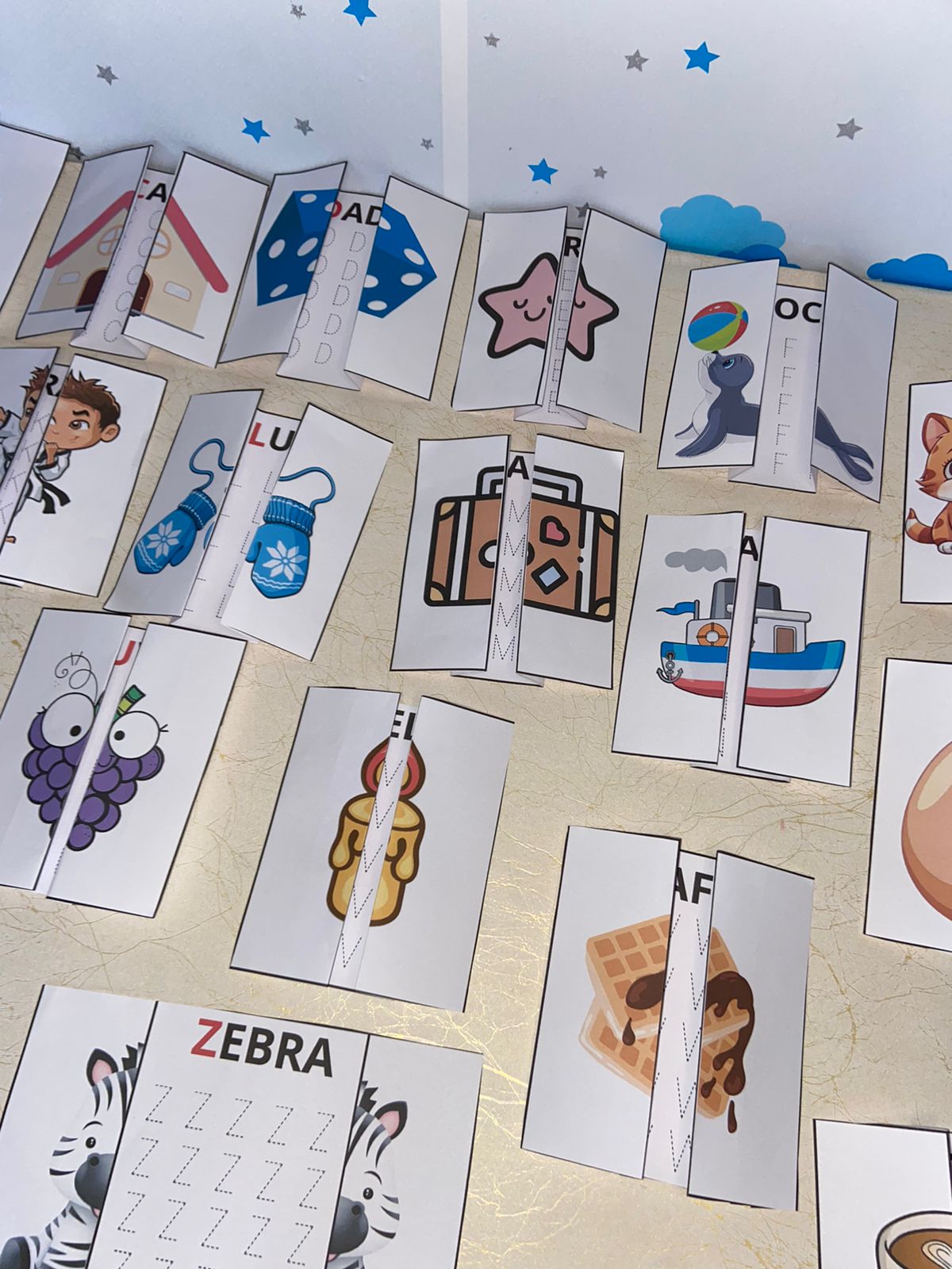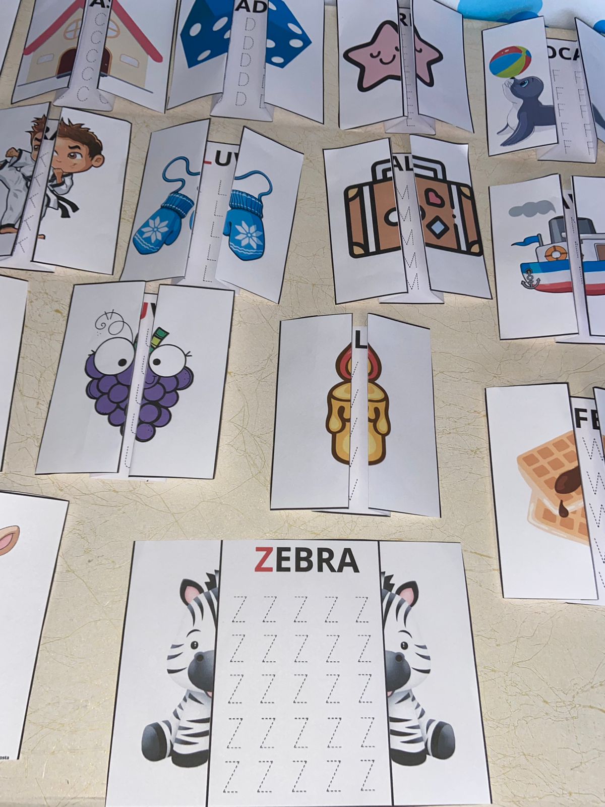 2 letras por folha A4 para facilitar o aprendizado.