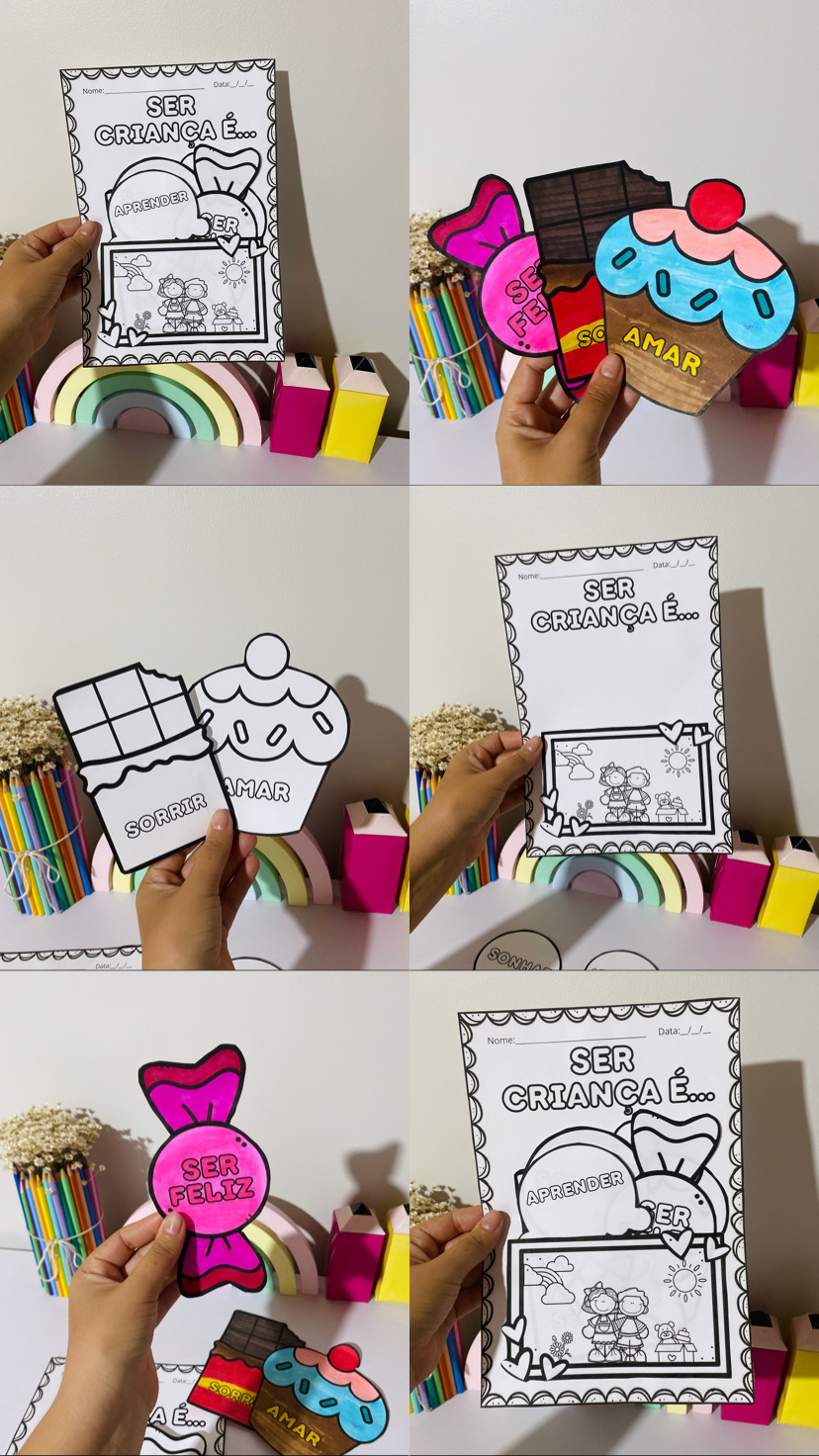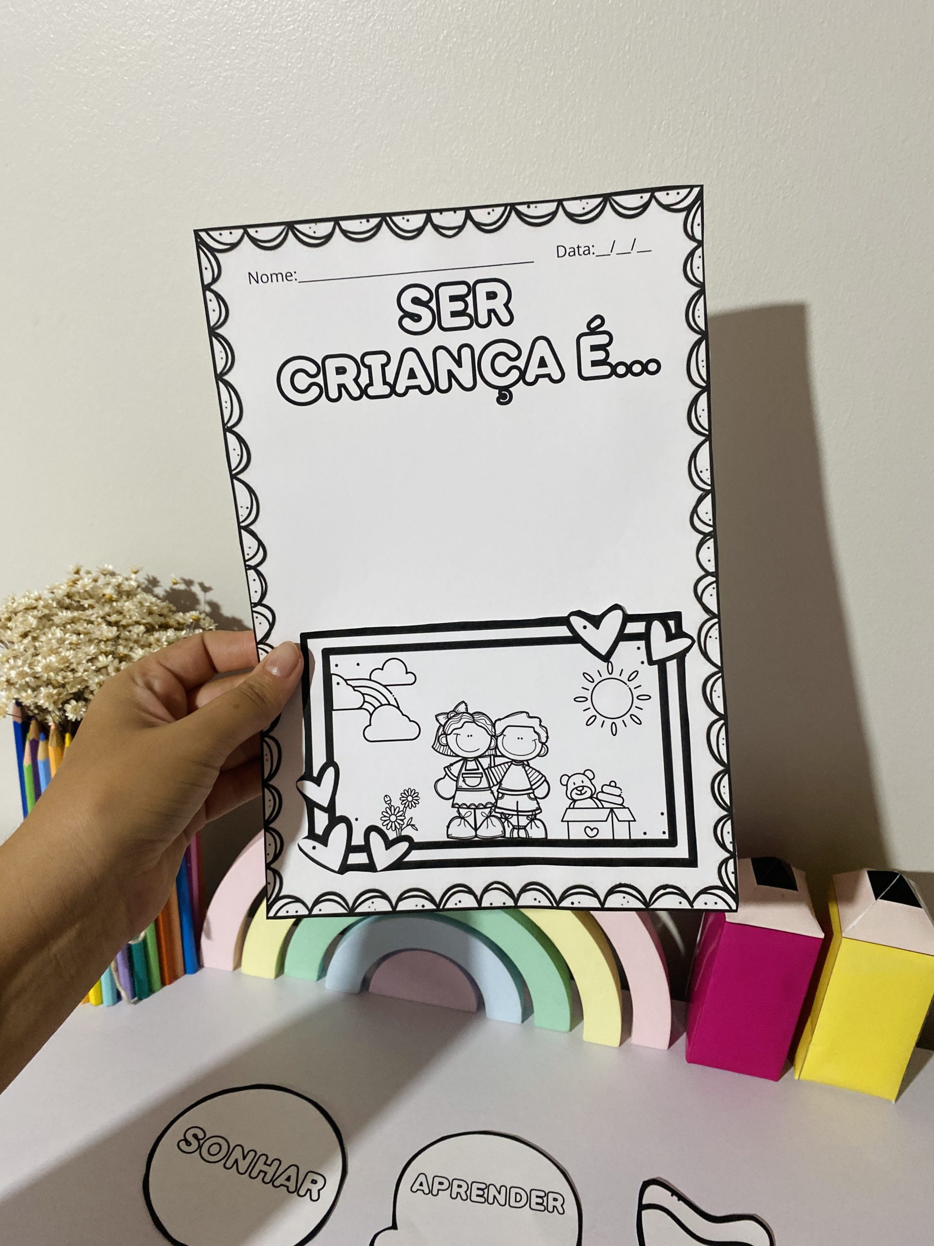 Atividade lúdica para valorizar a infância e refletir sobre o que é ser criança: brincar, sonhar, aprender e amar.📄 PDF pronto para imprimir.