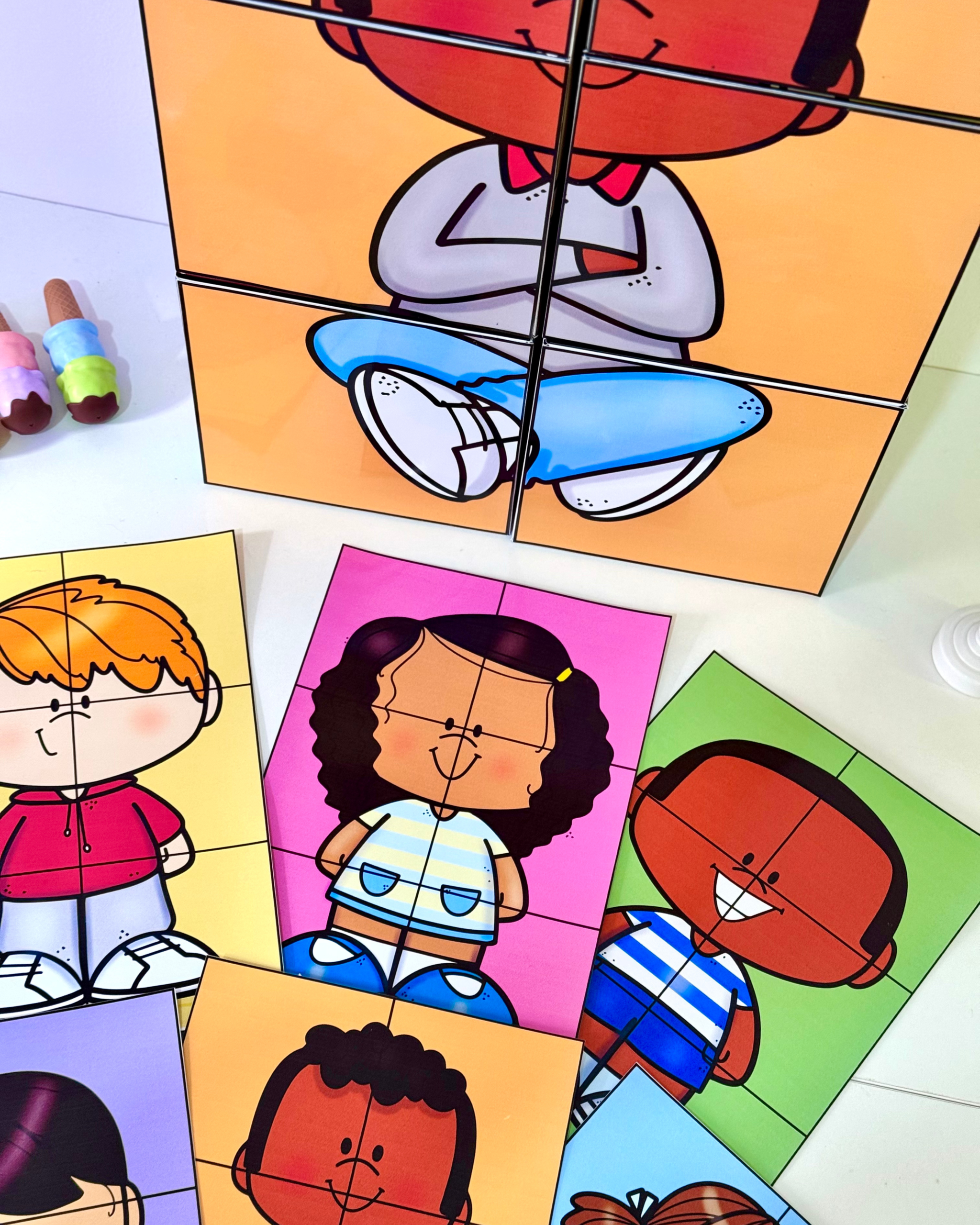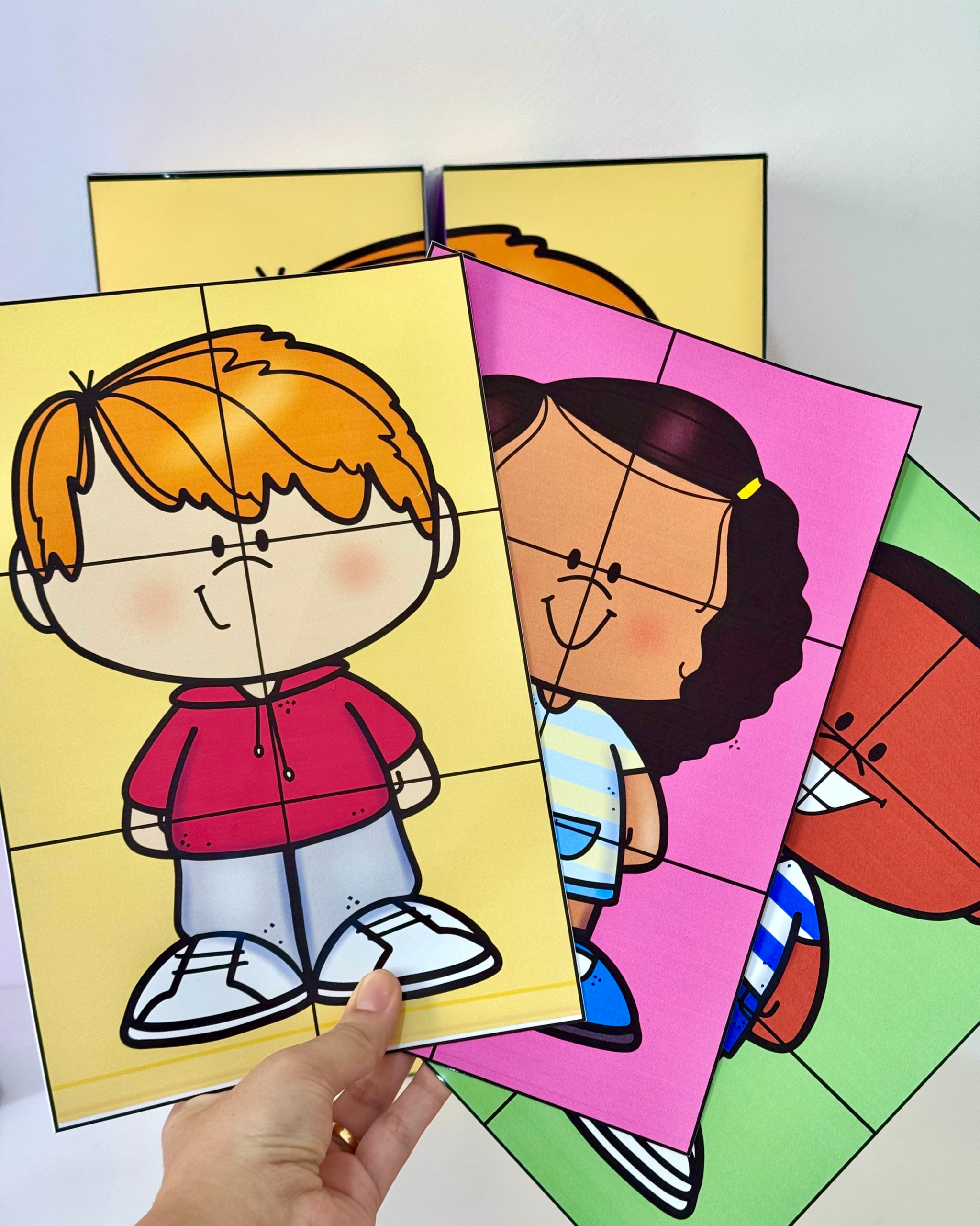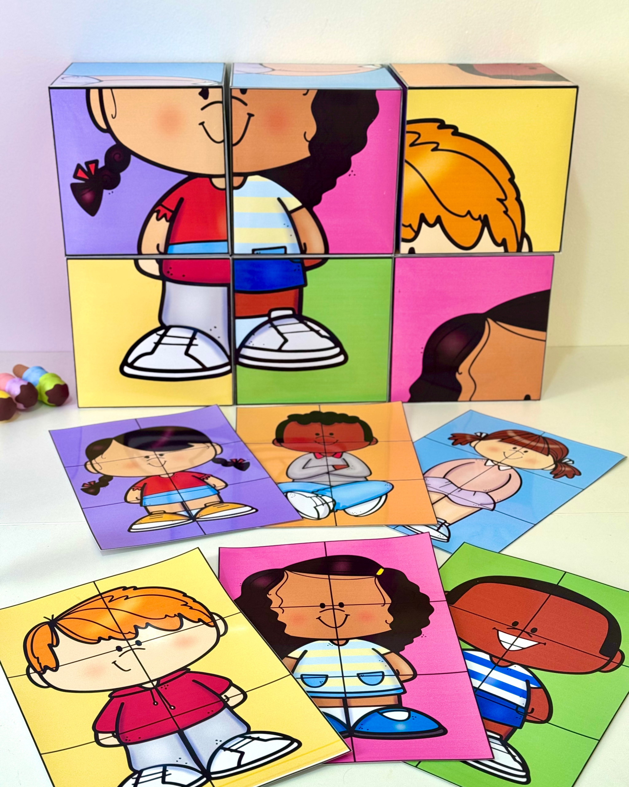 Monte 6 dados que formam 6 figuras diferentes e estimule habilidades cognitivas e motoras das crianças!