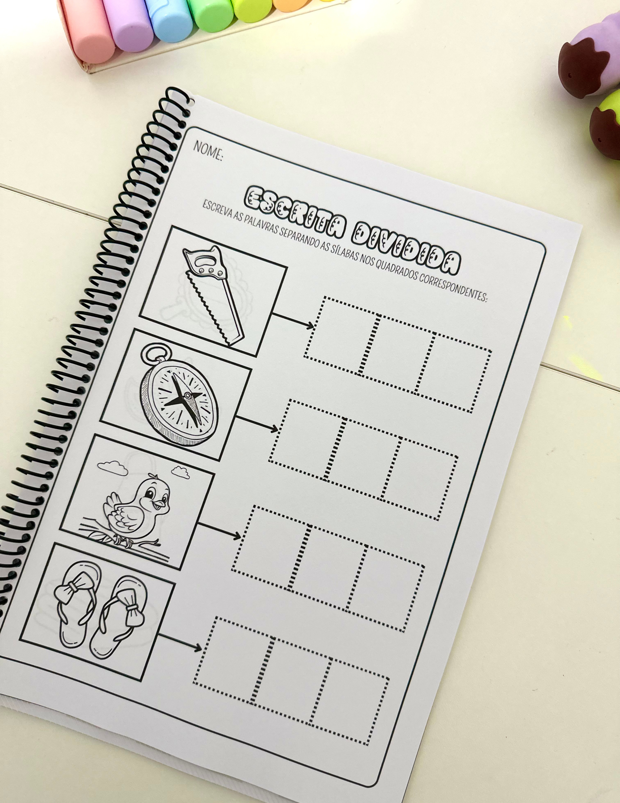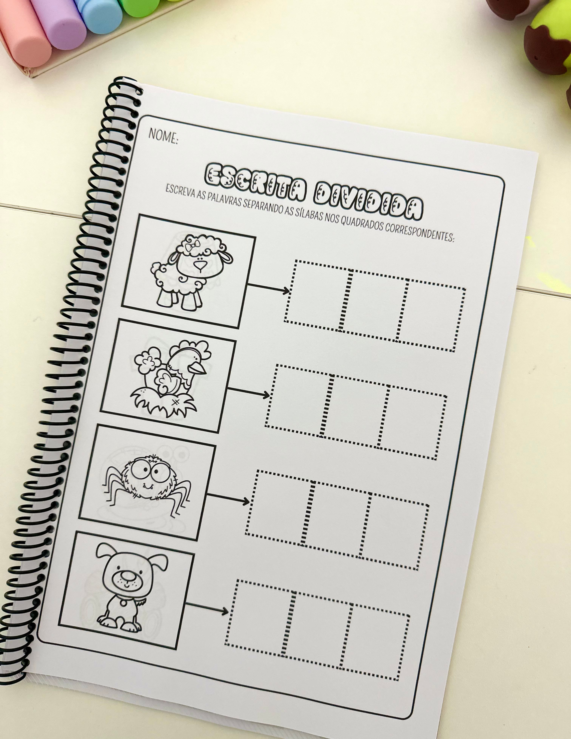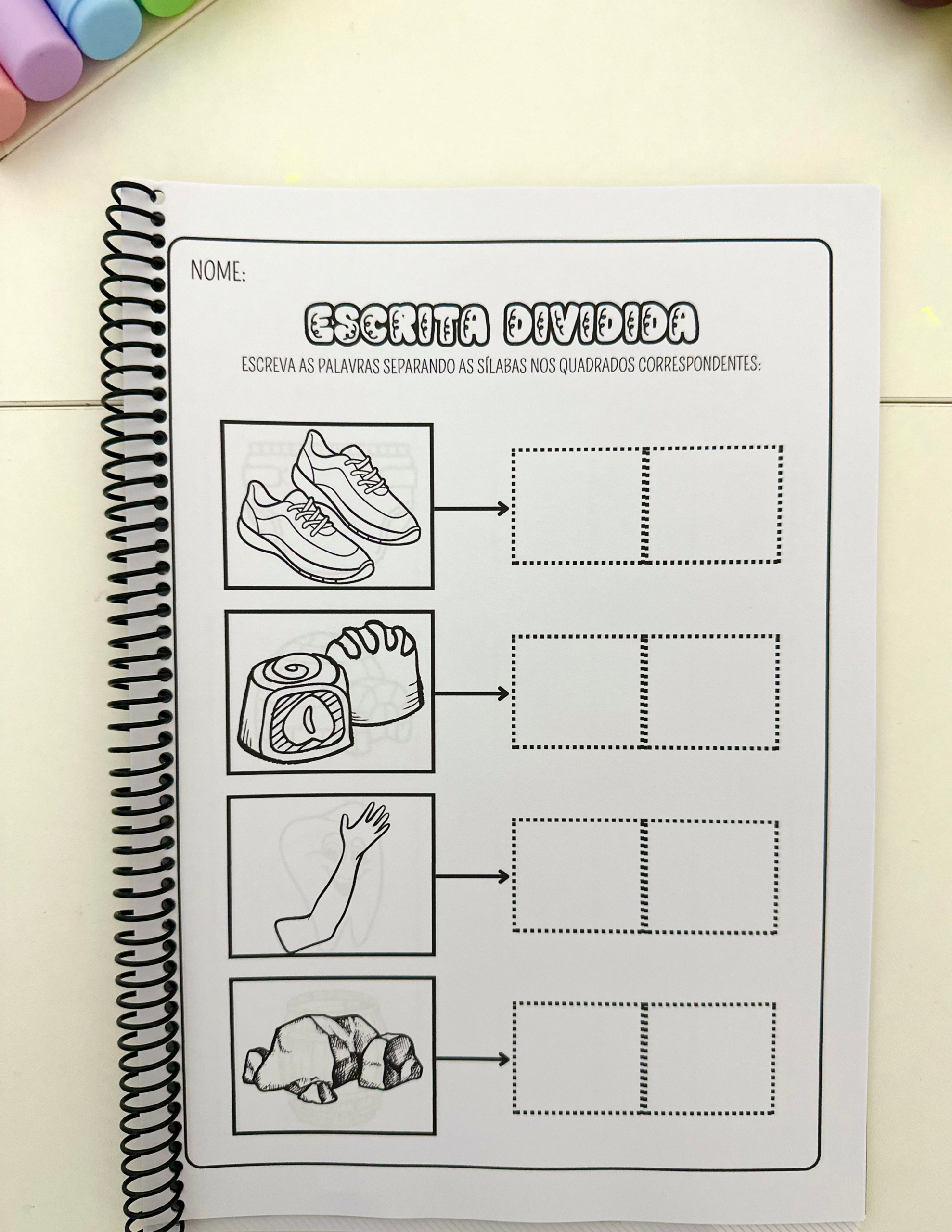 Atividades para trabalhar sílabas complexas, divisão de sílabas e escrita autônoma com crianças em alfabetização.