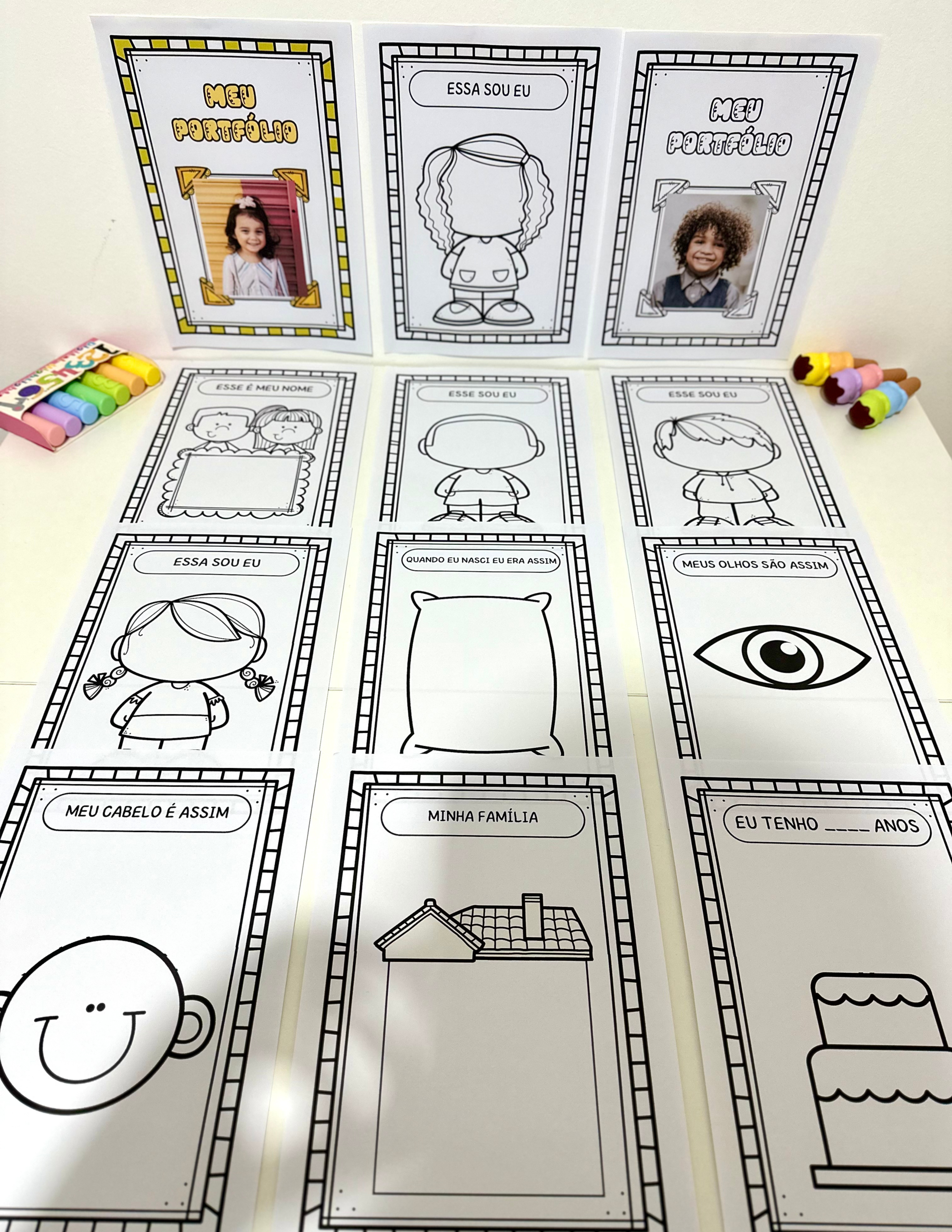 Trabalha nome, identidade, coordenação motora, criatividade e habilidades artísticas.